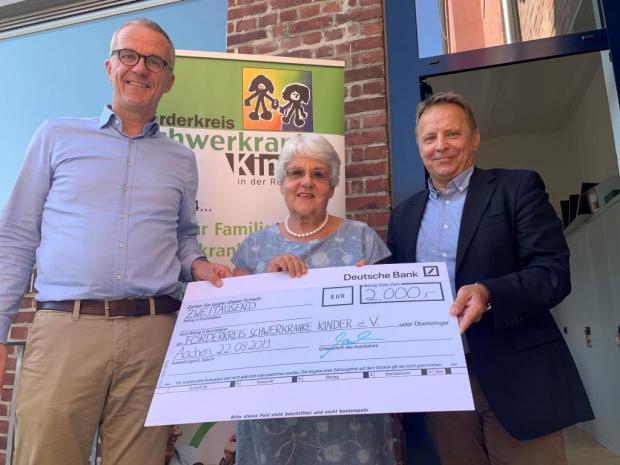 Stefan Schäfer (links) und Elke Henche (Mitte), Vorstandsmitglieder Förderkreis „Schwerkranke Kinder e.V.“, mit Ralf Martens (rechts), Sprecher der Siemens Niederlassung Aachen