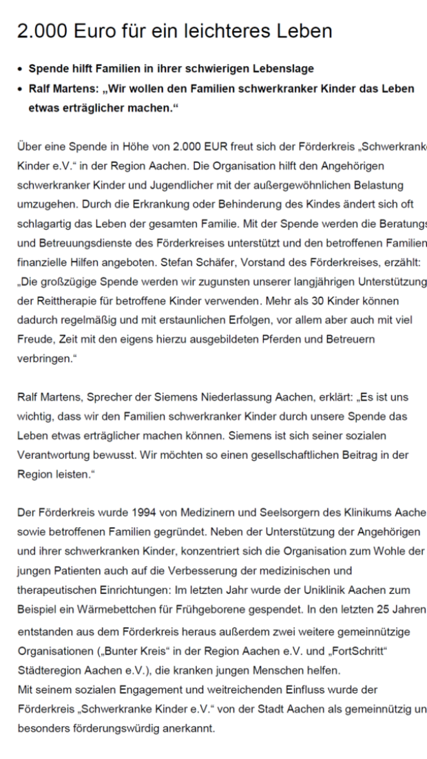 Siemens AG spendet 2.000 € für unseren Förderkreis